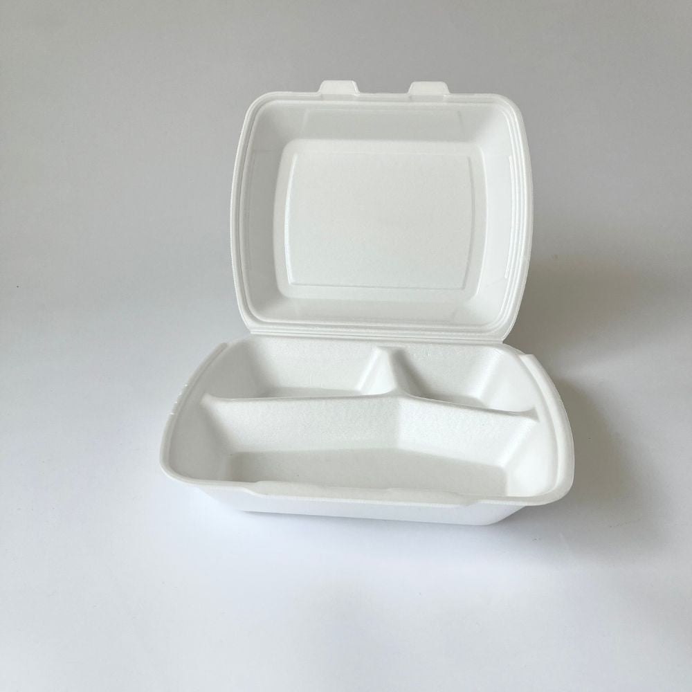 3-osainen menuboxi XPS on kevyt ja käytännöllinen elintarvikepakkaus, joka on valmistettu laminoidusta XPS-materiaalista. Rasia kestää hyvin lämpöä ja soveltuu erinomaisesti take away -ruoille, joissa halutaan erotella eri komponentit. Kolme osastoa mahdollistavat ruoka-annoksen jakamisen ilman sekoittumista.